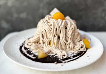 ふんわりと焼き上げたスポンジに、濃厚なバニラアイスを重ねた「マロンぱるふぇ」は、栗のやさしい甘さとアイスの冷たさが絶妙に調和した一皿です。期間限定の味をお楽しみください。
